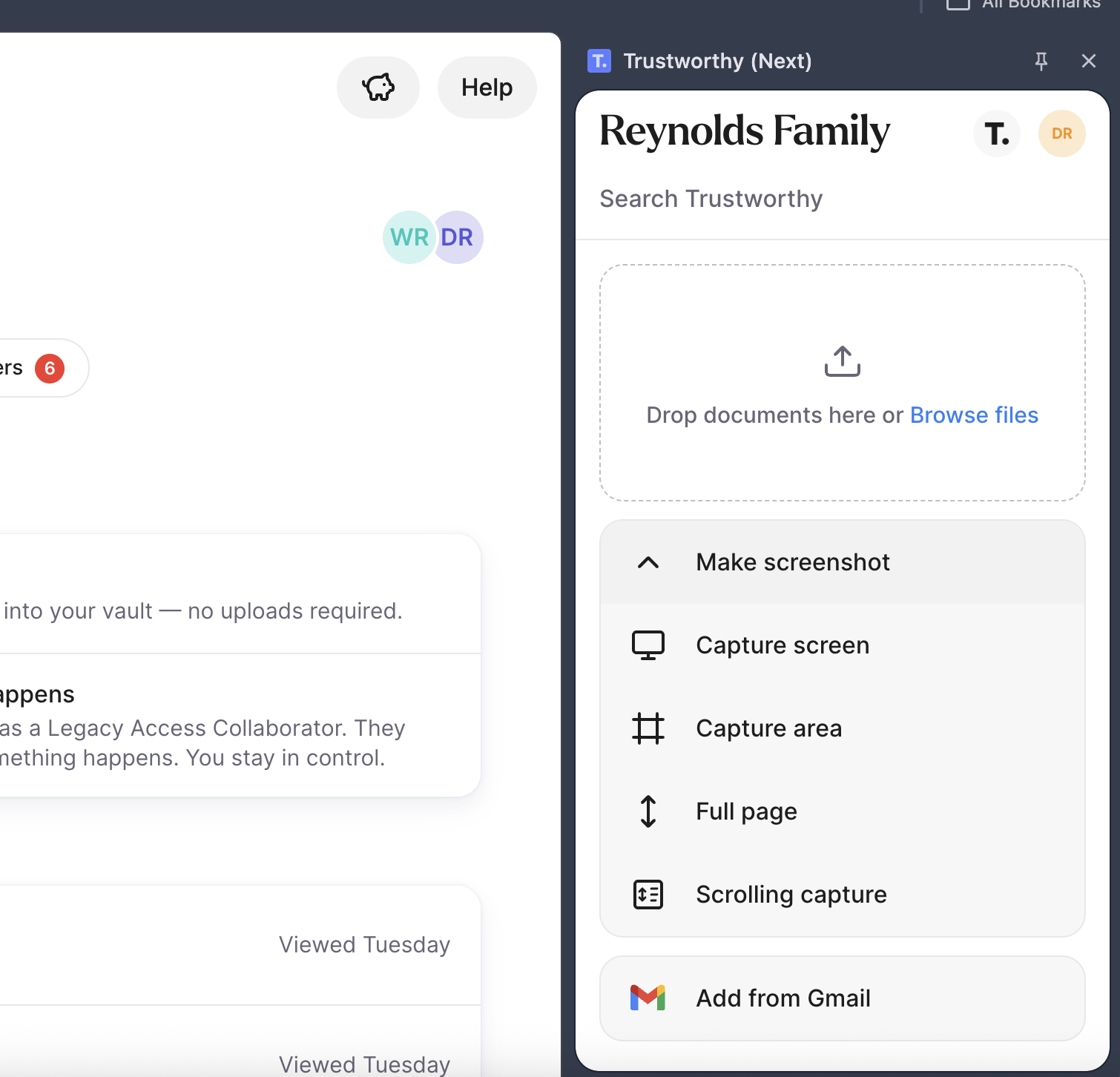 Sometimes you encounter information that is on a web page that you want to file in Trustworthy. This could be online form submission confirmations, online procedures, or even photos. The browser extension can capture whatever you're currently viewing in your browser and send it directly to Trustworthy.
