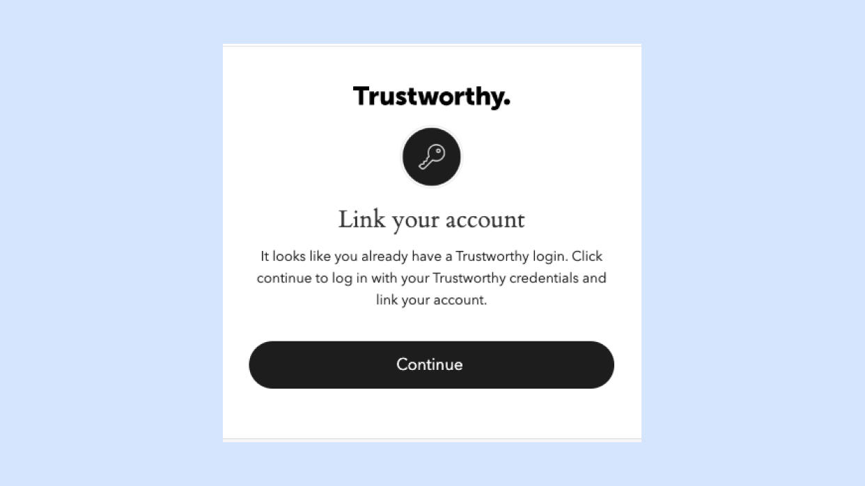 To link your Google or Apple account to an existing Trustworthy account, they must use the same email address that you used to sign-up for Trustworthy.