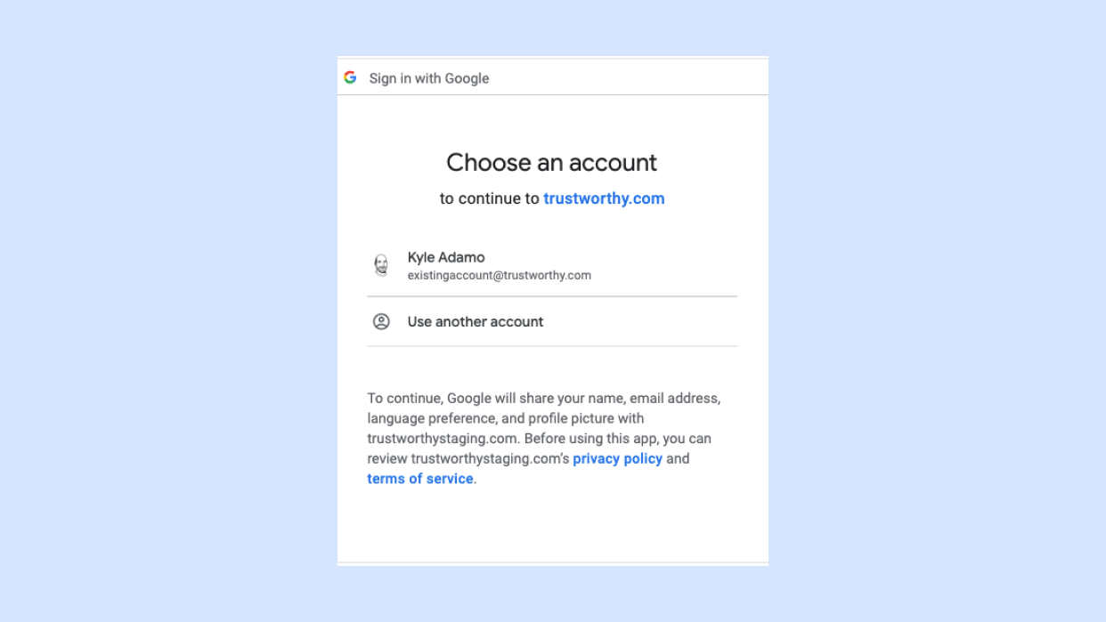 In order to confirm that you want to link your Google/Apple login, you will need to authenticate using your Trustworthy account credentials this one time when prompted.
